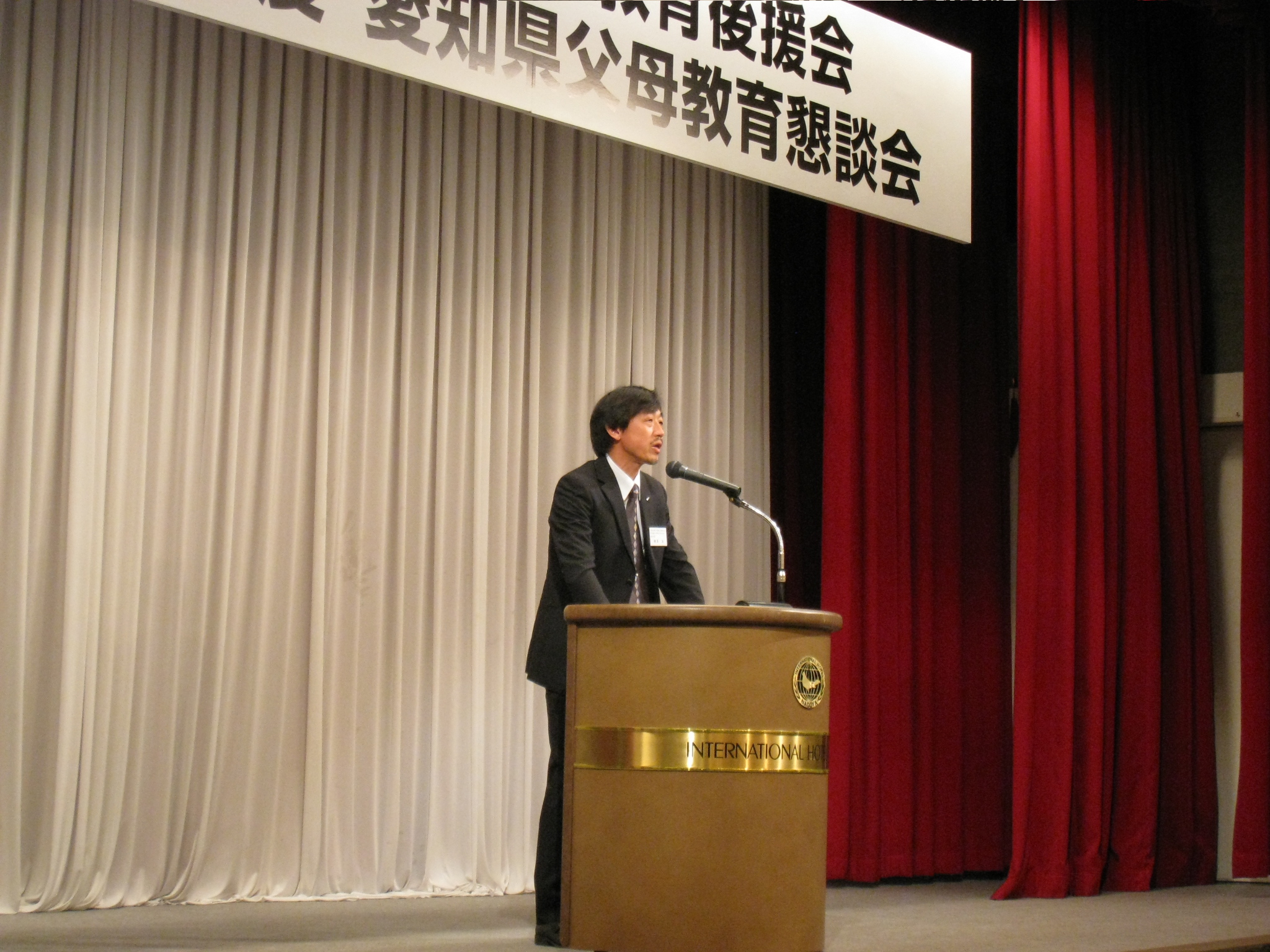 7月10日(土曜日)、名古屋国際ホテルにて立命館大学父母教育懇談会(理系)が開催されました。この会に、愛知県校友会から横澤副会長が来賓として出席、愛知県校友会のプレゼンテーションを行いました。立命館に子供達を送る父母の参加者は約250名。