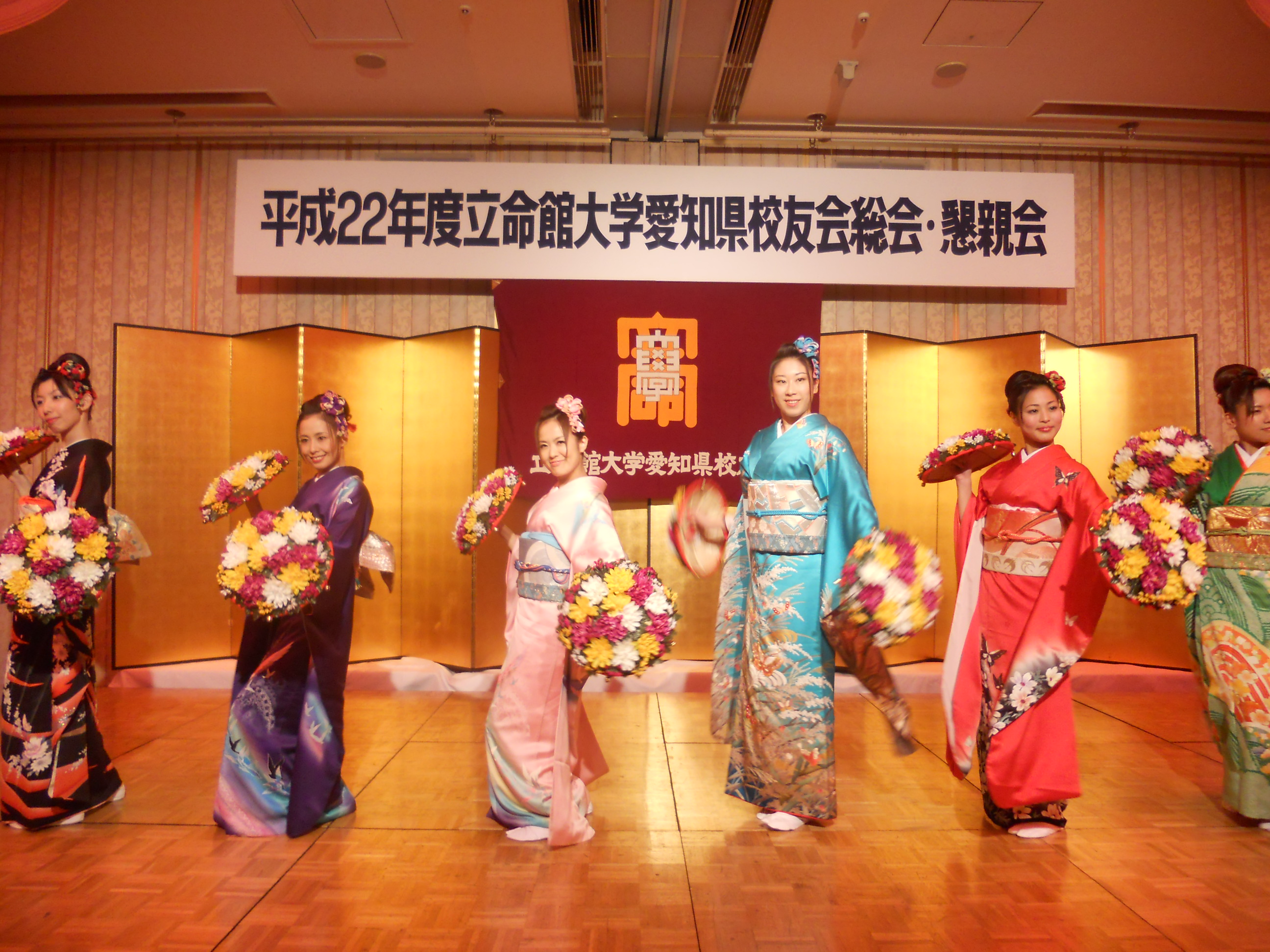 京都から迎えた京小町踊子隊8名のあでやかな踊り、事務局メンバーが準備した全員参加のクイズ大会など、盛りだくさんの内容で会場内はおおいに盛り上がりました。そして大詰めの校歌・応援歌は伊藤副会長のリードでさらにハイテンションに・・・。