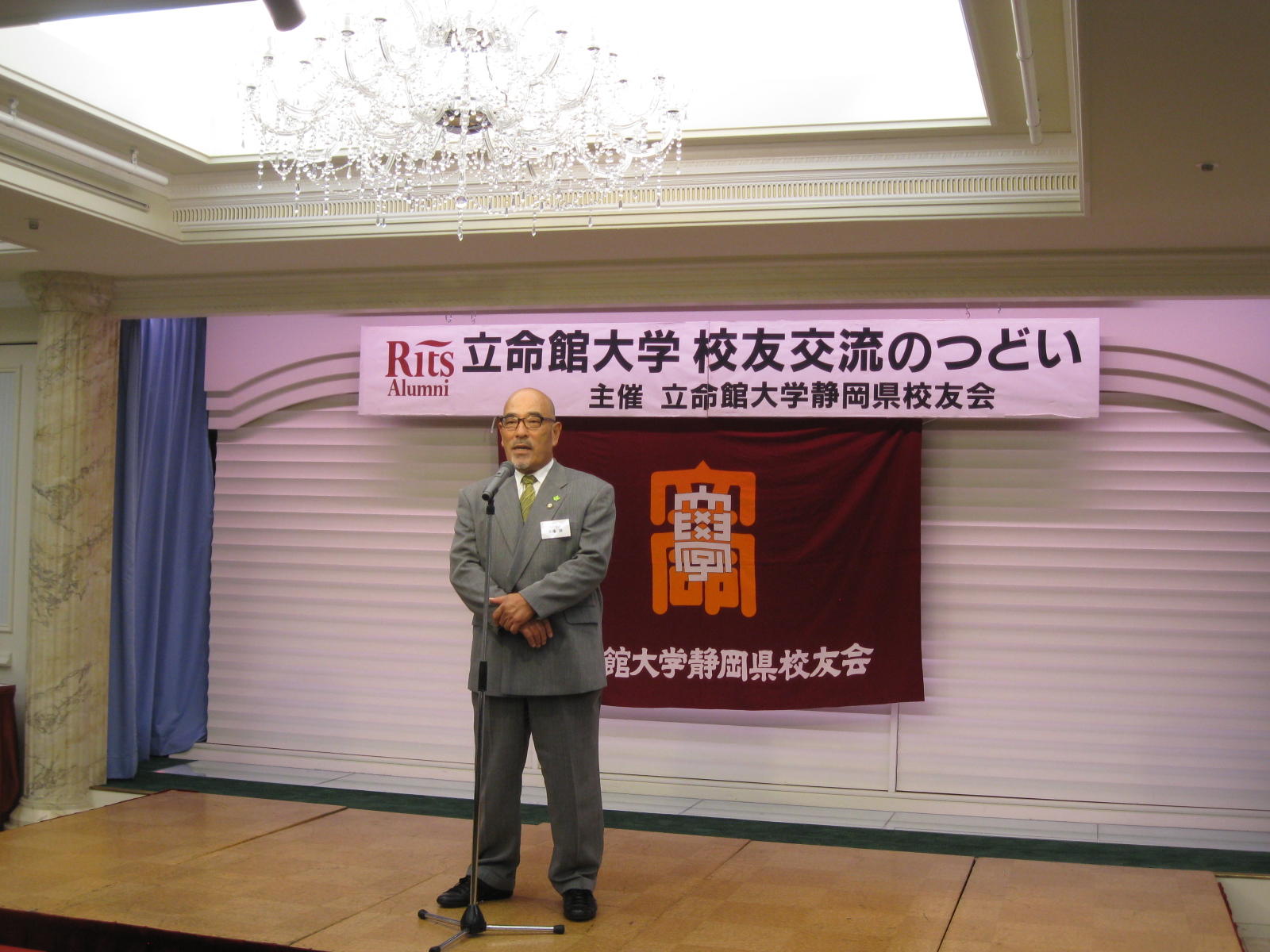 【報告】友好隣県、静岡県校友会総会が開催されました7月20日、静岡市葵区クーポール会館で平成26年度立命館大学静岡県校友会総会が、約80名の参加者を迎えて開催されました。今総会では大石会長の退任に伴う新会長の選出が行われ、新たに大場勝氏が就任されました。