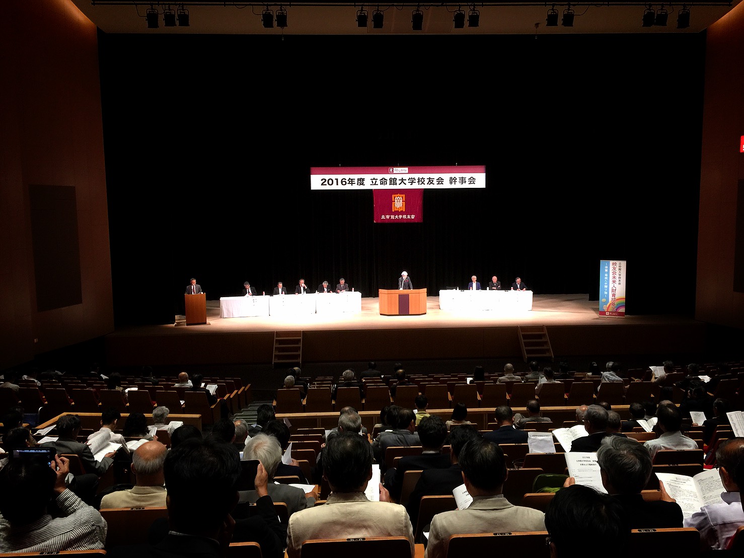 報告事項では、昨年度のオール立命館校友大会の開催報告にはじまり、本年10月29日土曜日に金沢で開催の「オール立命館校友大会2016in金沢」の開催報告ならびに今後の校友大会、未来人財育成基金の募集推進について順に報告がありました。