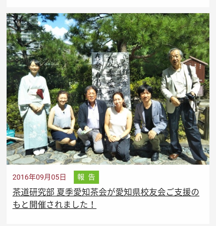 【報告】第61回夏季愛知茶会の様子が校友会本部ホームページに掲載されました9月4日日曜日、白鳥庭園で賑やかに開催されました、第61回愛知茶会の盛会ぶりが校友会ホームページに掲載されました。