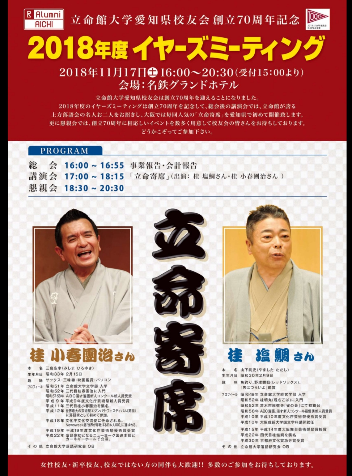 | 2025.9.12 【お知らせ】立命館大学愛知県校友会2025年イヤーズミーティングを開催します |