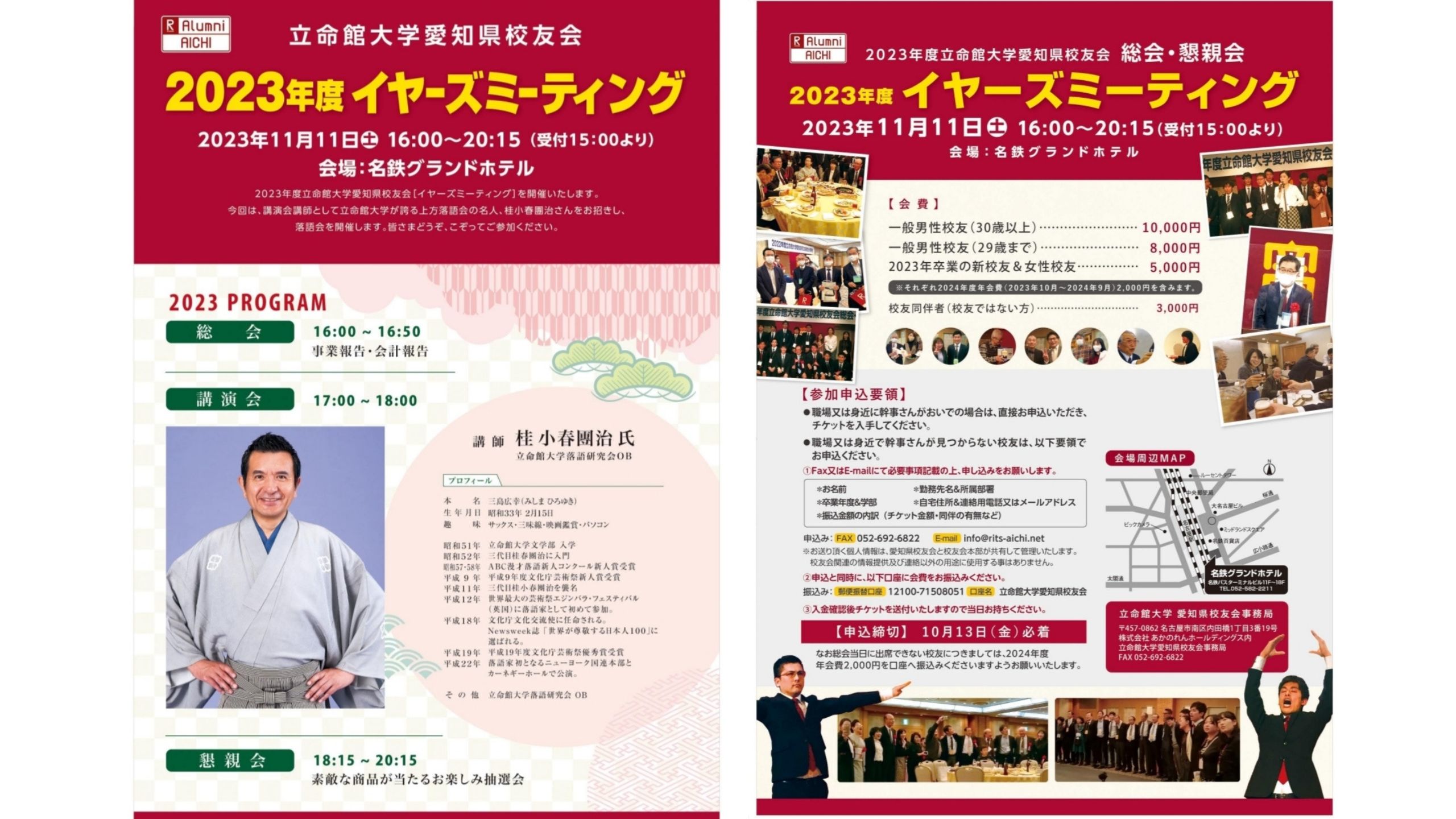 【お知らせ】【10/13まで受付中】立命館大学愛知県校友会2023年イヤーズミーティングを開催します【2023年愛知県校友会イヤーズミーテンング】