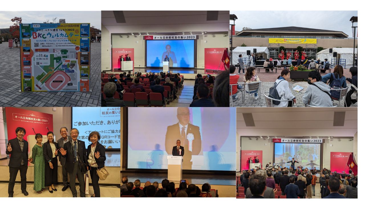同日は、地域住民・企業・行政・学生・教職員が集い、来場者が様々な体験を行うイベントとしてBKCウェルカムデー(企画数150以上!)が賑やかに開催されており、多様な方々が思い思いに楽しむ一日となりました。去る10月27日(金)、28日(土)、29日(日)ではオール立命館校友の集い2023オンライン企画も展開されました。