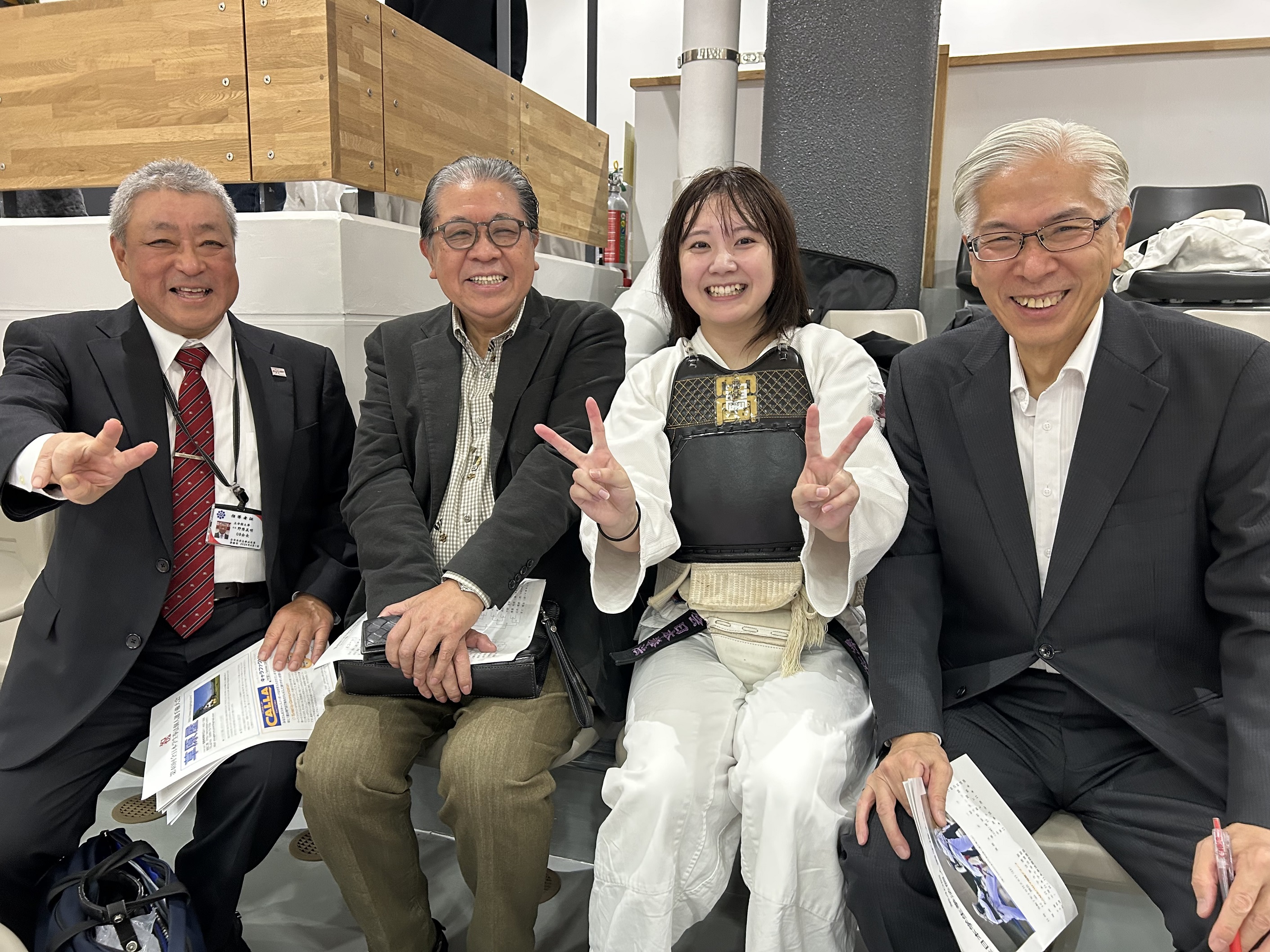 会場には立命館大学日本拳法部OBOG会の野際義明会長並びに尾松信幹事長も応援に来られており、白熱の試合が続く中、一緒になって声援を送り続けました。